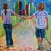 Cadeau voor de bruiloft: schilder een toepasselijke voorstelling waarop de liefde tussen twee mensen blijkt. Ze lopen naar de onbekende toekomst. Het schilderij is 100 x 100 cm groot.
